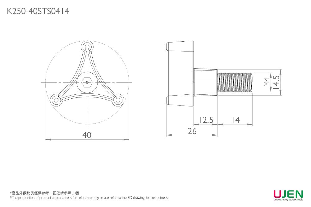Triangle Grip Knob Stainless Steel Bolt, M4 x 14mm, Quick-fasten, D40 | Achieve Ergonomic Efficiency with Adjustable Handles for Machinery