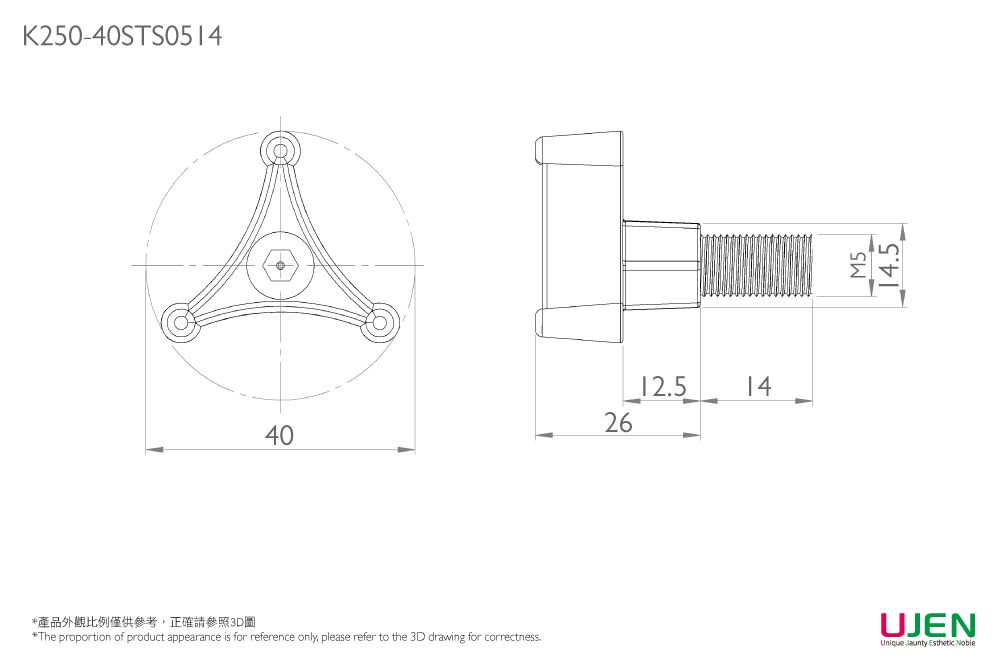 Based in Taiwan since 1994, UJEN DEVELOPMENT CO., LTD. expertise in manufacturing high-quality Triangle Grip Knob Stainless Steel Bolt, M5 x 14mm, Quick-fasten, D40, hand screws, knob screws, adjustable handles, grip knobs, and indexing plungers. Their commitment to customization and precision ensures each component, from hand screws to indexing plungers, meets rigorous standards. This dedication positions UJEN as a leader in supplying durable and reliable industrial components to global markets.